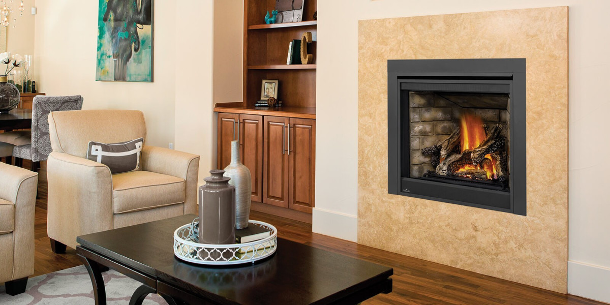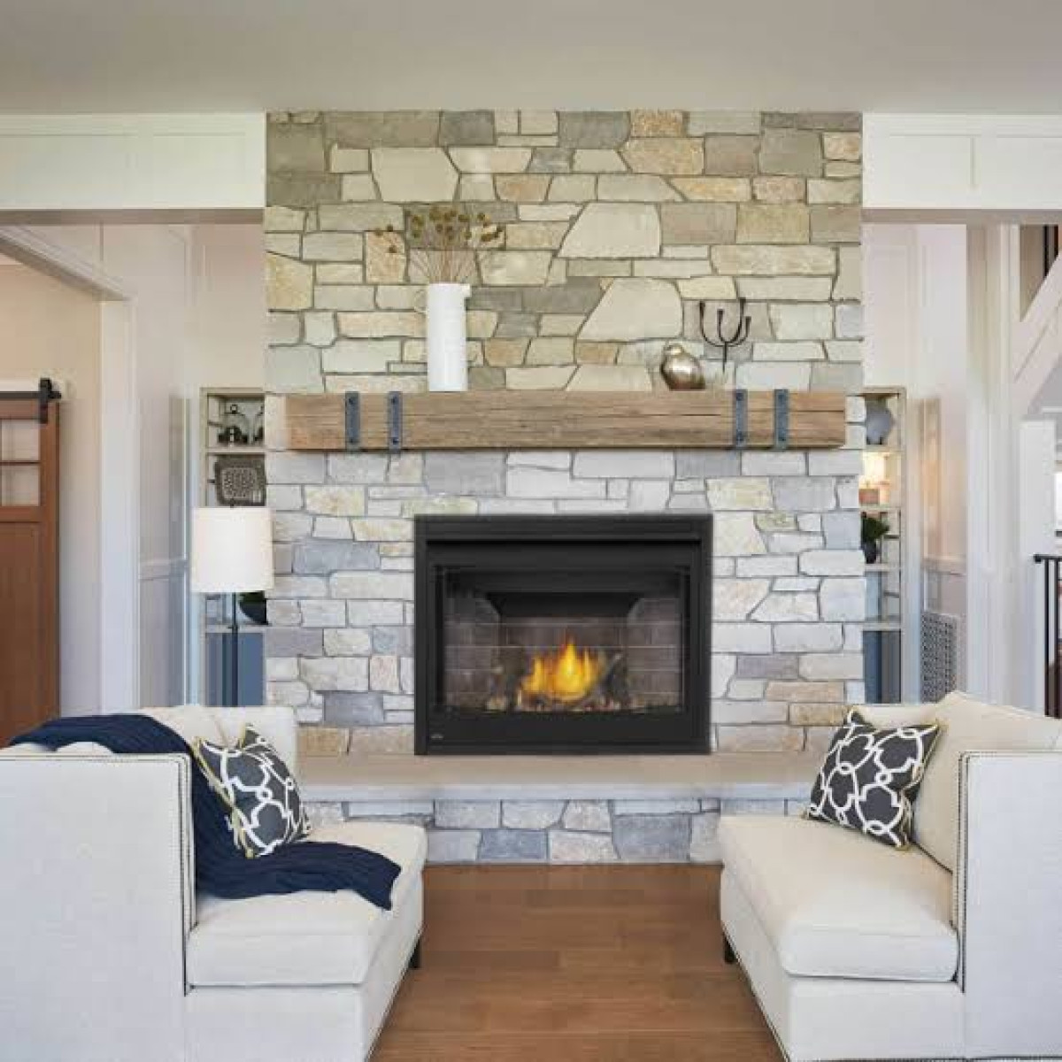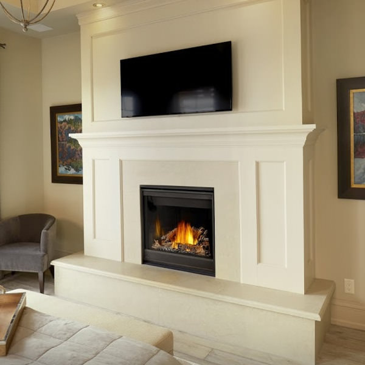 Una chimenea de gas con gran área de visualización que aumenta la presencia del fuego realista y los leños pintados a mano. Perfecta para espacios donde se desea crear un punto cálido y acogedor sin complicaciones de instalación.