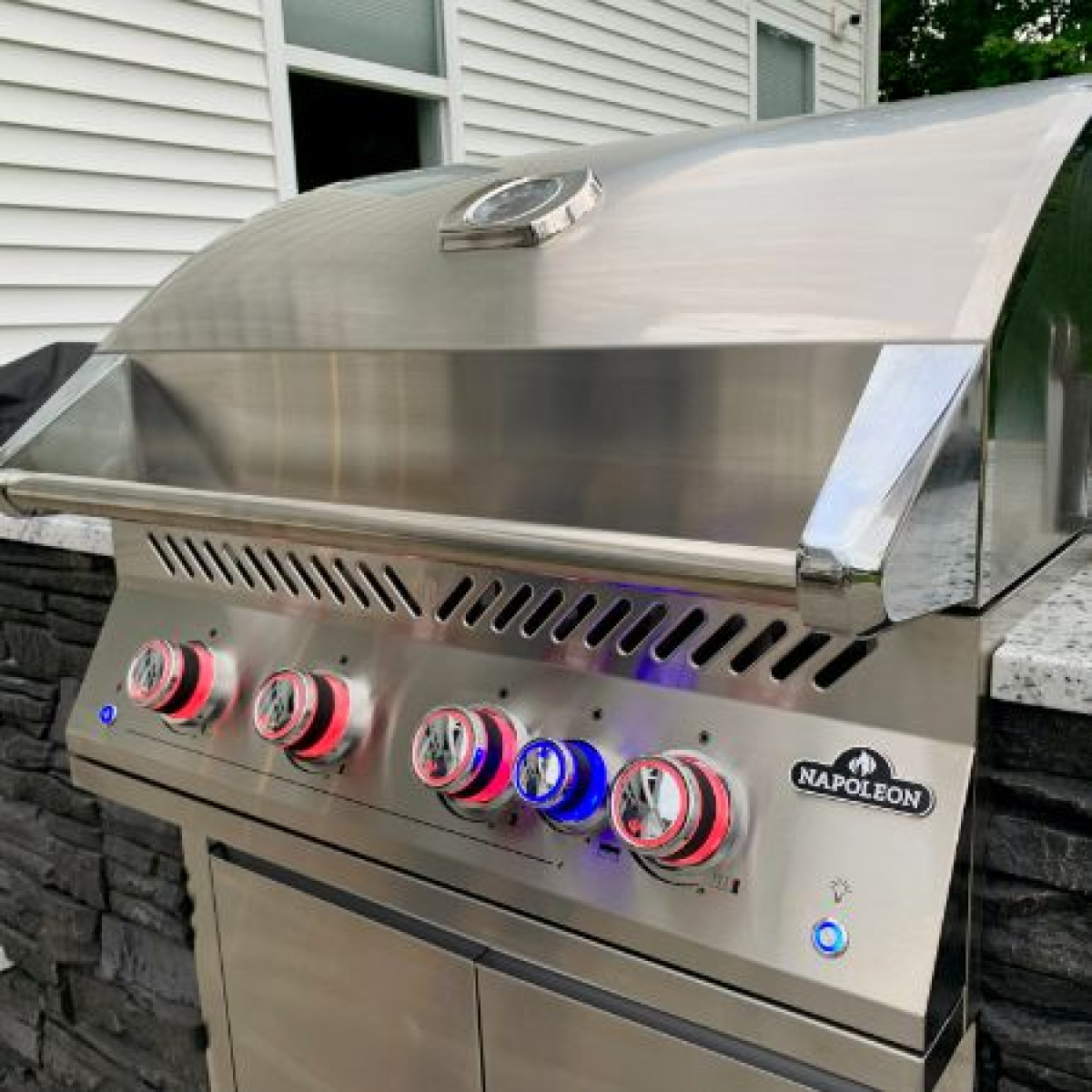 Las perillas de control están iluminadas para brindar ambiente y seguridad, brillando en un azul glorioso que cambia a rojo cuando los quemadores están en uso. A esto se suman las luces halógenas interiores para iluminar la superficie de la parrilla y disfrutar de una carne asada nocturna que será un verdadero placer.