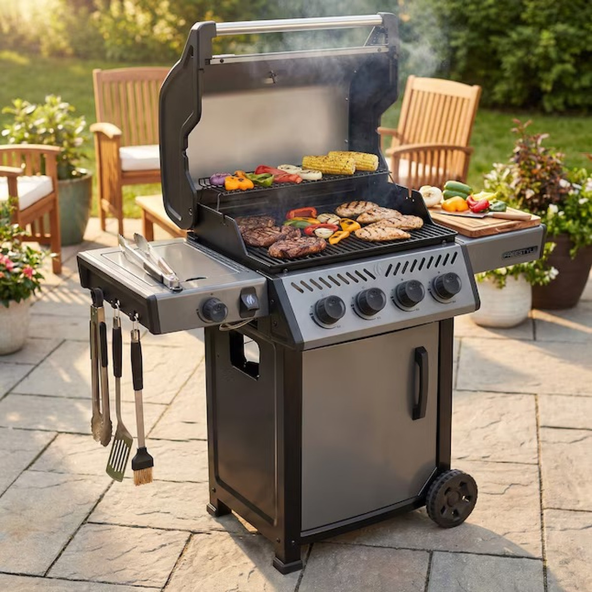 El Freestyle 425 de Napoleon ofrece mayor espacio de cocción y potencia, convirtiéndolo en una opción ideal para quienes cocinan para grupos más grandes. Sus cuatro quemadores de acero inoxidable garantizan una distribución uniforme del calor, permitiendo preparar diferentes alimentos al mismo tiempo.