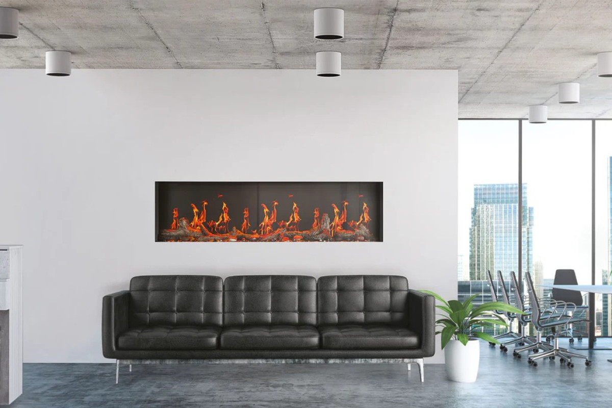 La chimenea Luminex utiliza una innovadora pantalla LCD para ofrecer tres estilos de llamas (gas, leña y danzantes) con realismo visual excepcional y efectos de sonido gracias a sus altavoces. Incluye leños “Beach Fire” y kit Woodland), varios colores de llama, e iluminación (cama de luz y superior) Diferentes formas de manejarla. Puede instalarse de forma empotrada con vistas de uno, dos o tres lados.