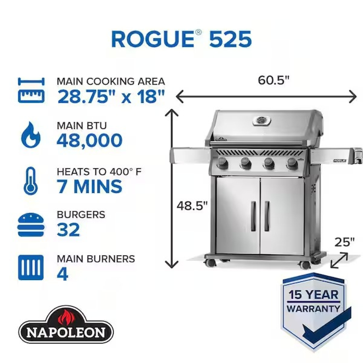 | Tamaño | 525in2 área principal de cocción |