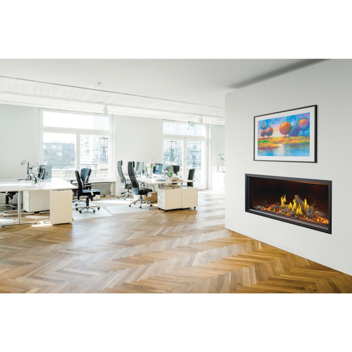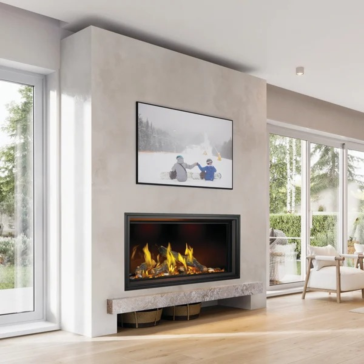 Es ideal para espacios contemporáneos donde se busca una chimenea con fuerte impacto arquitectónico y desempeño eficiente.